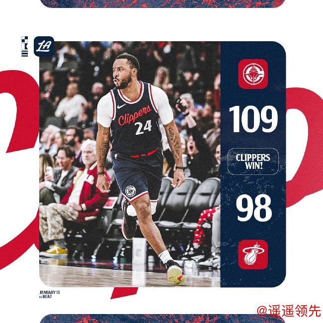 快船第三节发威单节赢16分奠定胜局,哈登三分10中6砍下26分11助攻,鲍威尔高效29分,祖巴茨13中10砍下21分20篮板,快船终结连败升回西部第六。
